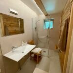 Pirmajame miško namelio aukšte įrengta erdvi svetainė su spragsinčiu židiniu, kurianti ypatingą jaukumo jausmą vėsiems vakarams. Greta – pilnai įrengta virtuvė, pritaikyta tiek lėtiems pusryčiams, tiek jaukiems vakarienės ritualams. Šiame aukšte taip pat yra 2 miegamieji ramiam poilsiui bei vonios kambarys su dušu.